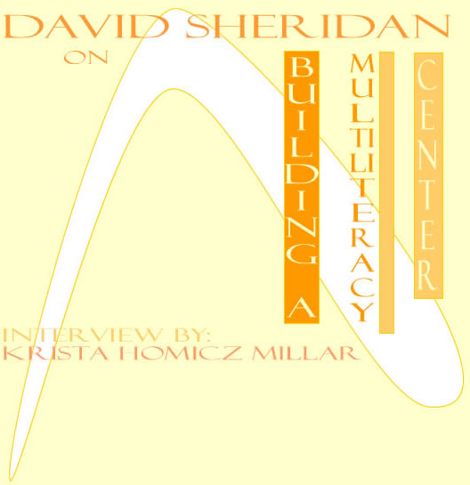 ![]() In this interview, David Sheridan shares what he has learned during his 2000-2003 efforts to build a Multiliteracy Center within the University of Michigan's Sweetland Writing Center. He provides us the realistic views and visionary arguments we might need to garner support and funding for building a Multiliteracy Center at our individual institutions. He also speaks candidly about the key challenges of directing such an endeavor in order to help us recognize possible obstacles and overcome them. The interview's three sections delineate areas of focus for those interested in designing and directing such a center. In "Building," Sheridan provides his thoughts on the practical foundations for setting up the center; in "Multiliteracy," he refines definitions and arguments for developing a multiliterate citizenry; in "Center," he illustrates the support that a course can receive from a Multiliteracy Center integrating the foundations and philosophy set forth in the first two sections. David M. Sheridan's interest in the intersection of writing centers and technology stems from working as a graduate student at Michigan State University's writing center, which has supported new media authoring for some time. After completing his Ph.D., he took a three-year lecturer position at University of Michigan's Sweetland Writing Center. He is now back at Michigan State University as the associate director of the Writing Center. In addition to writing centers, he is interested in signifying practices associated with the city of Detroit, including the way new technologies enable multimodal discourses of resistance. |