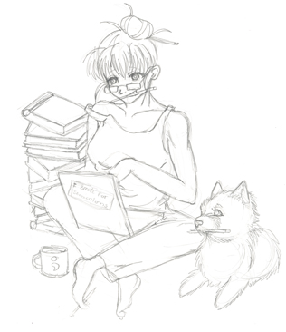 Each picture of Susie is created for a specific purpose. This particular picture was drawn during the last week of the spring 2013 semester for Susie’s Facebook page and shows Susie studying for finals in her pajamas. As with all her pictures, it was designed to connect with the population of the University of Houston-Clear Lake and was accompanied by a Facebook message wishing her fans luck on their finals.